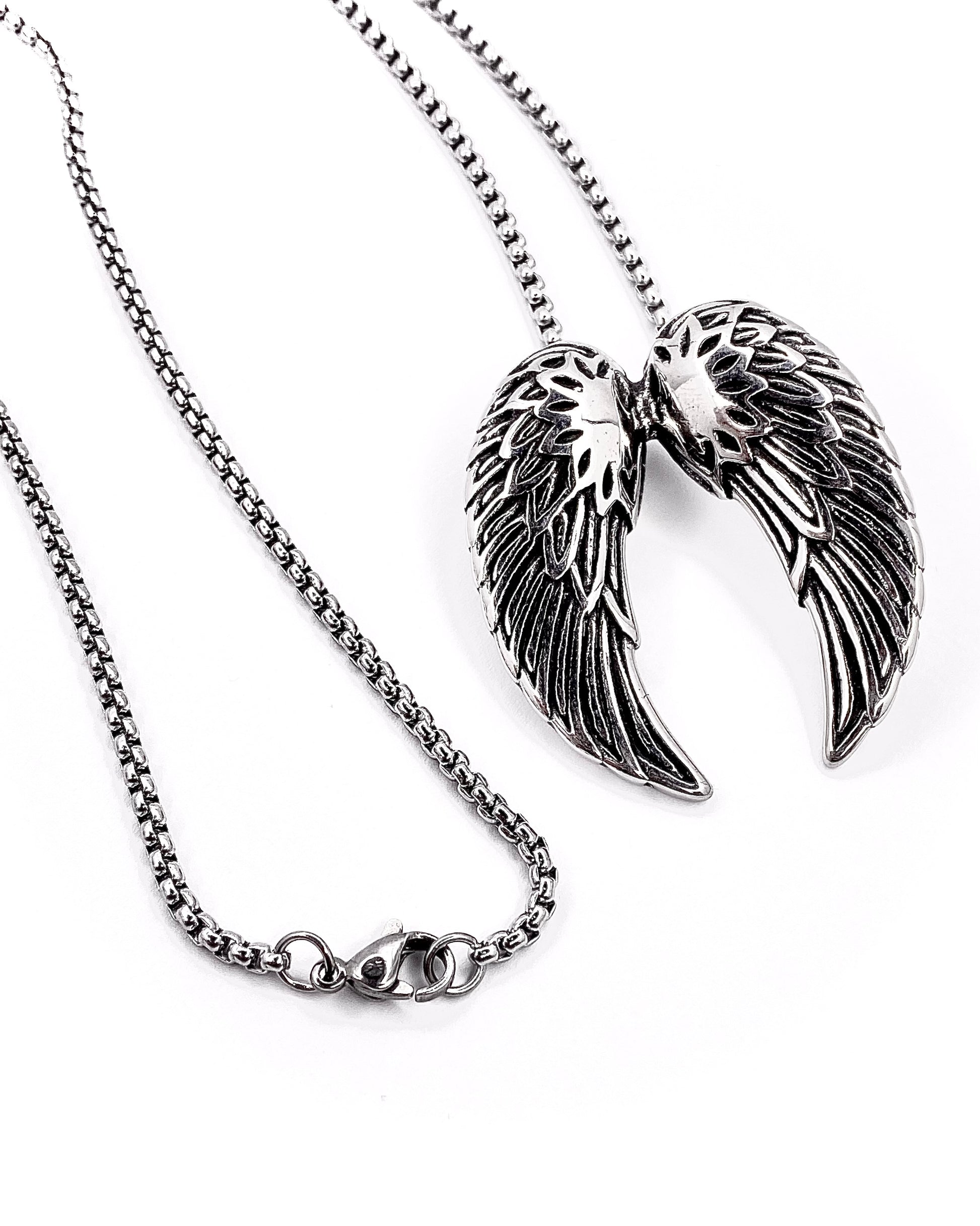 Collar con cadena de acero inoxidable con medida de 60 cm más colgante de acero inoxidable con forma de alas.