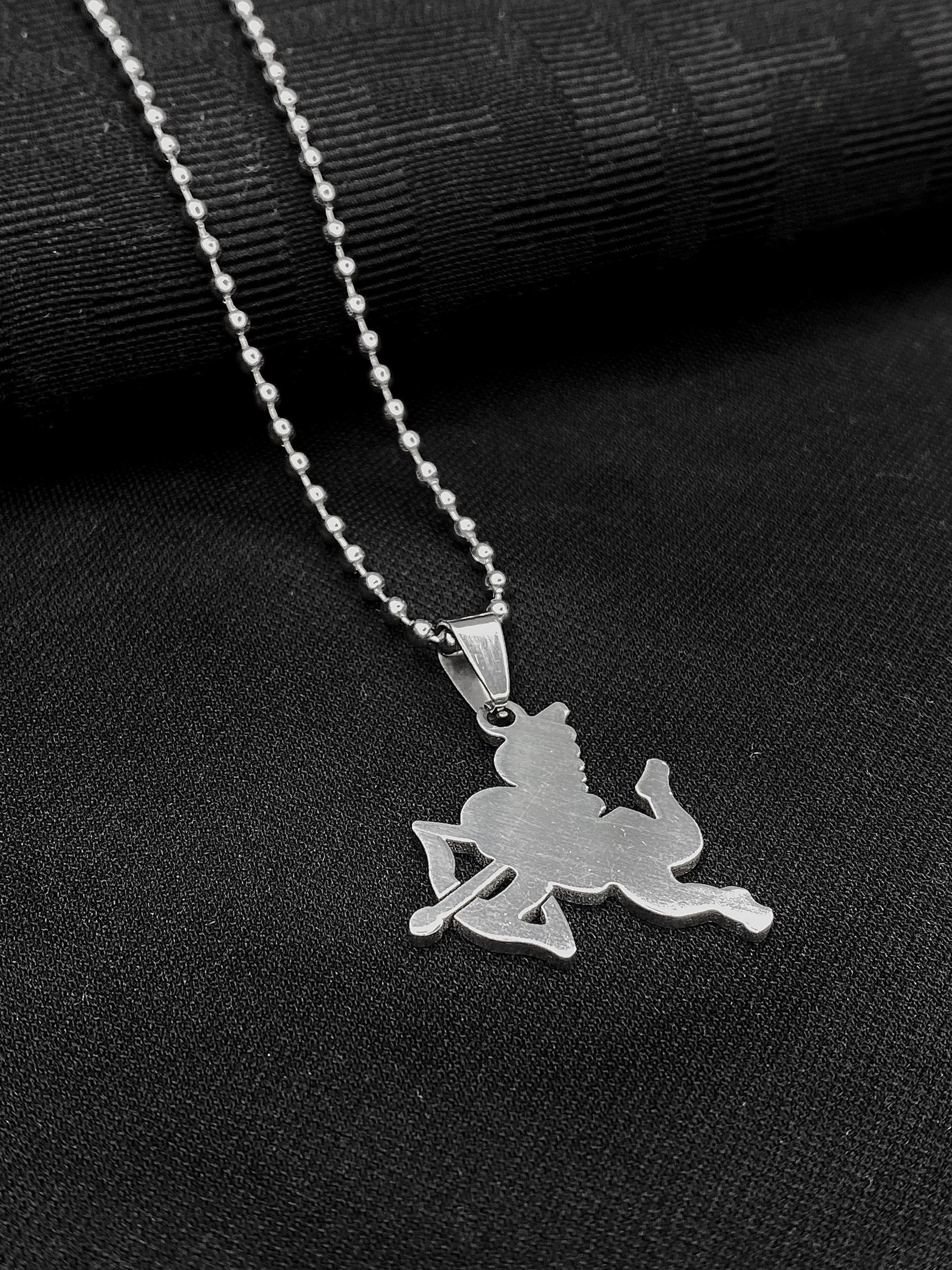 Collar con colgante de querubín hecho completamente de acero inoxidable con un largo de cadena de 55 cm.
