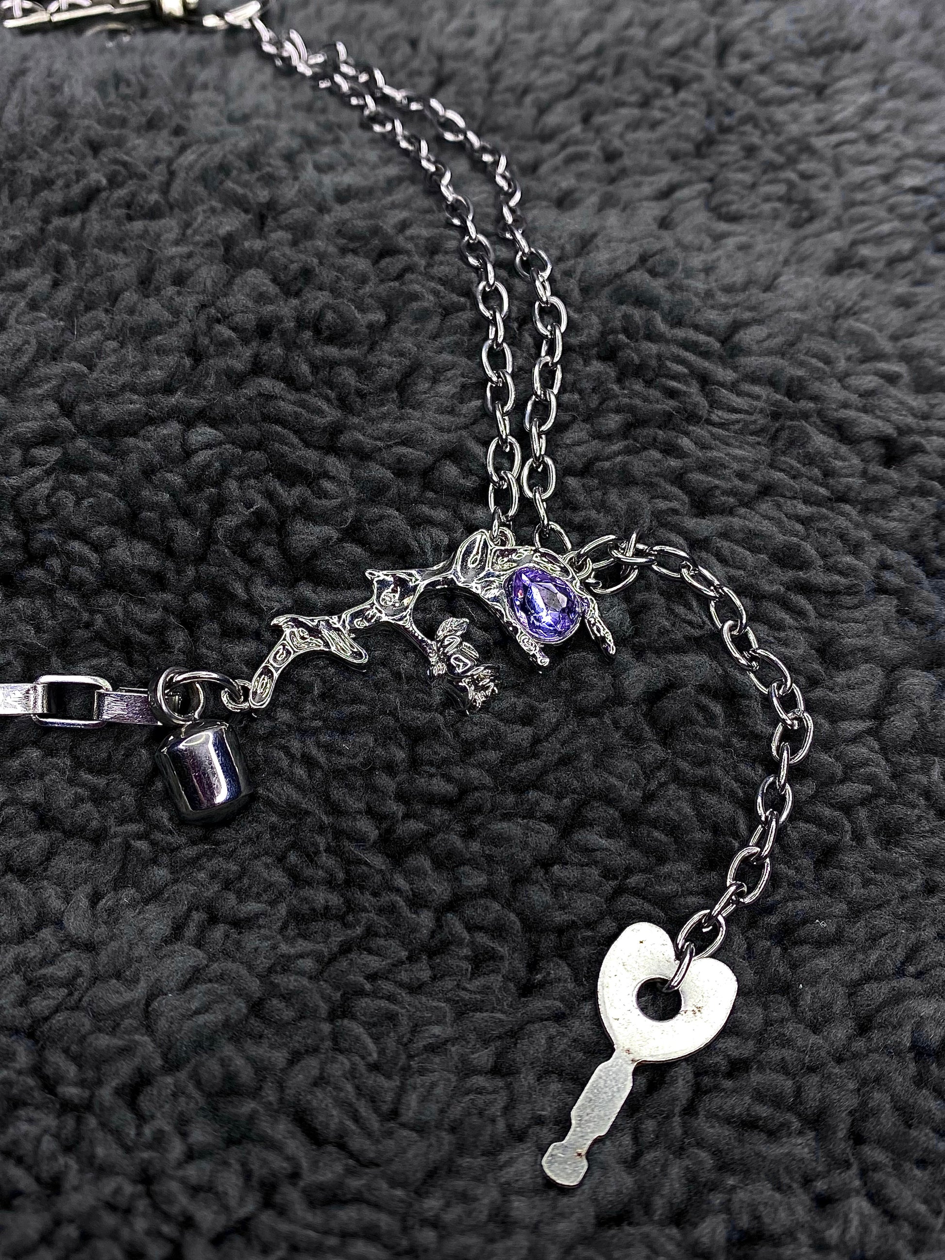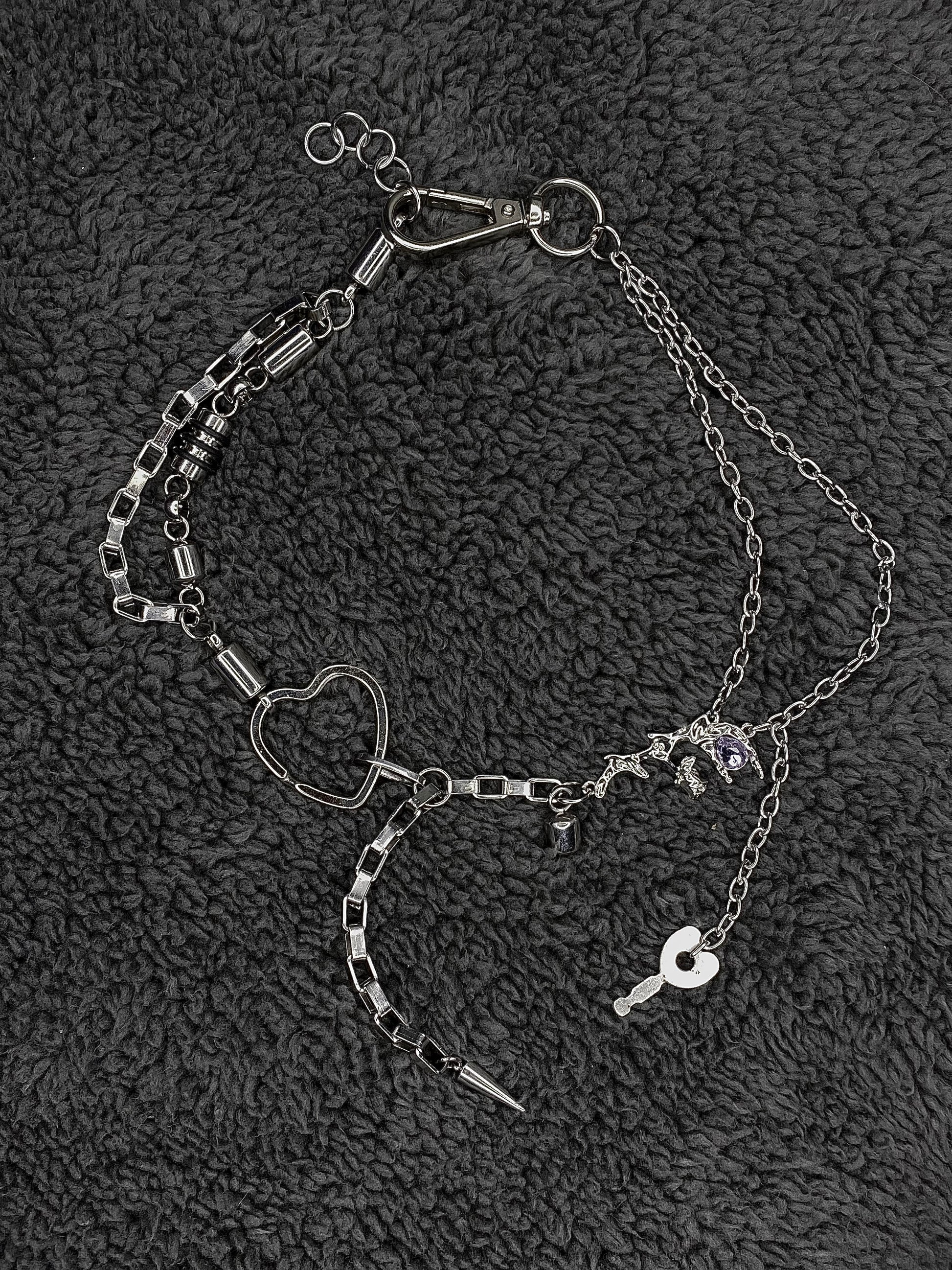 Collar estilo choker hecho con múltiples charms de colgantes y cadenas. Hecho con cadenas de acero inoxidable, enganches metálicos y dijes de aleación de zinc. Este modelo mide 38 cm e incluye 4 cm de extensor para alargar su medida.