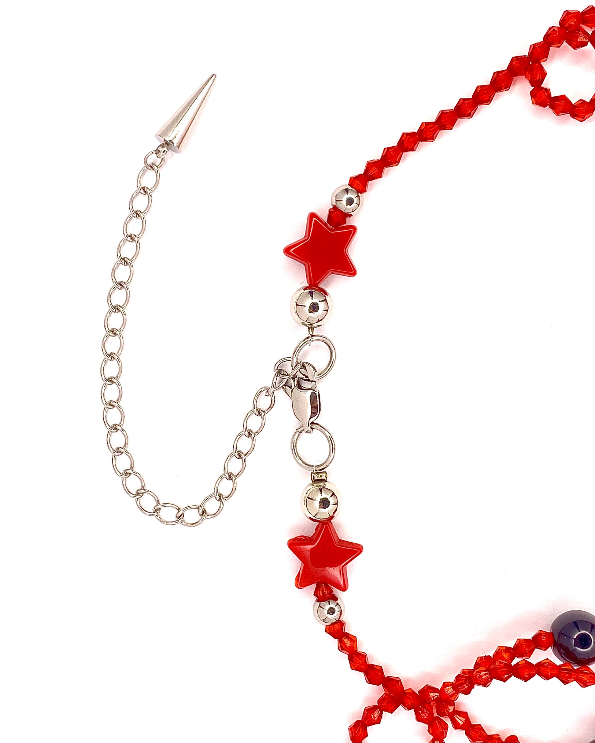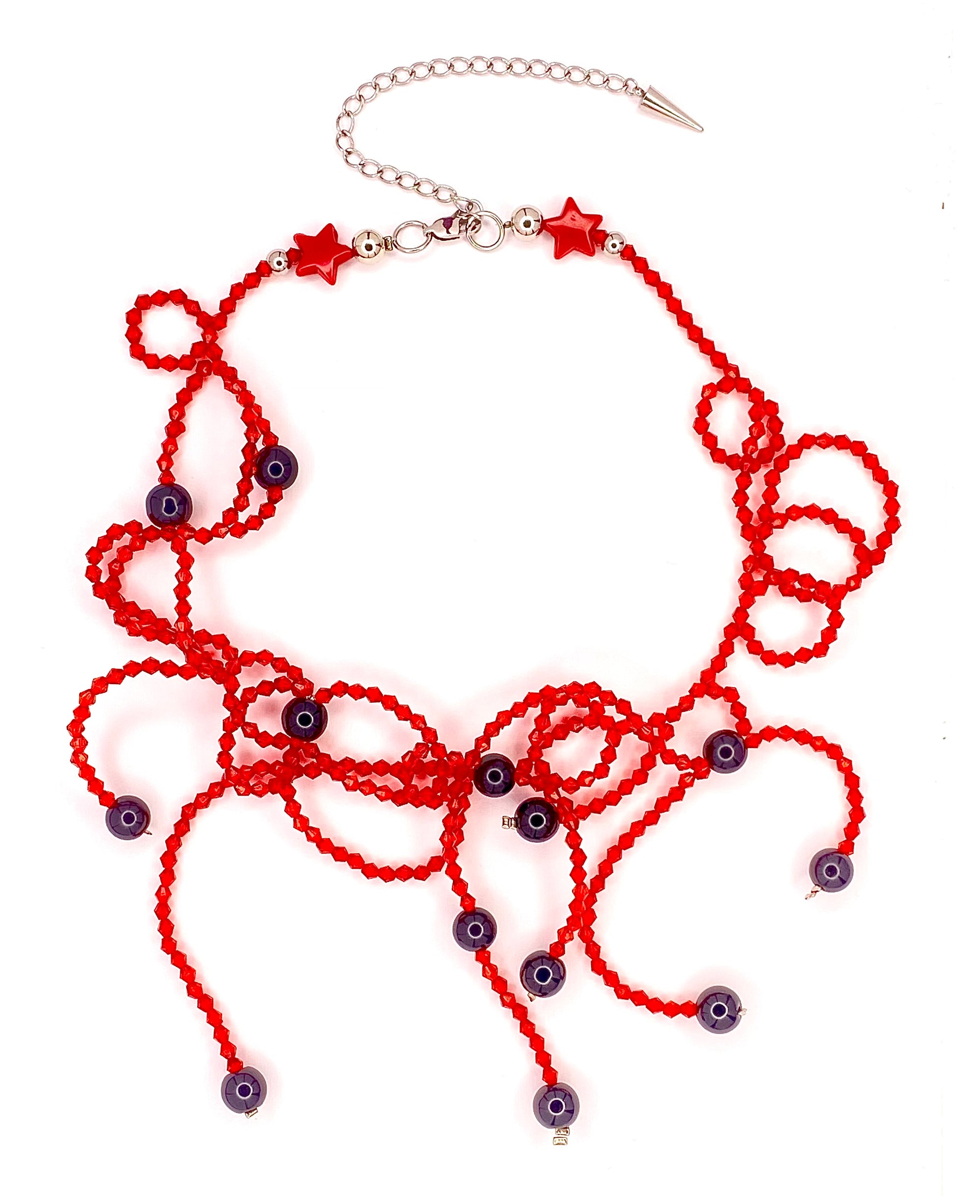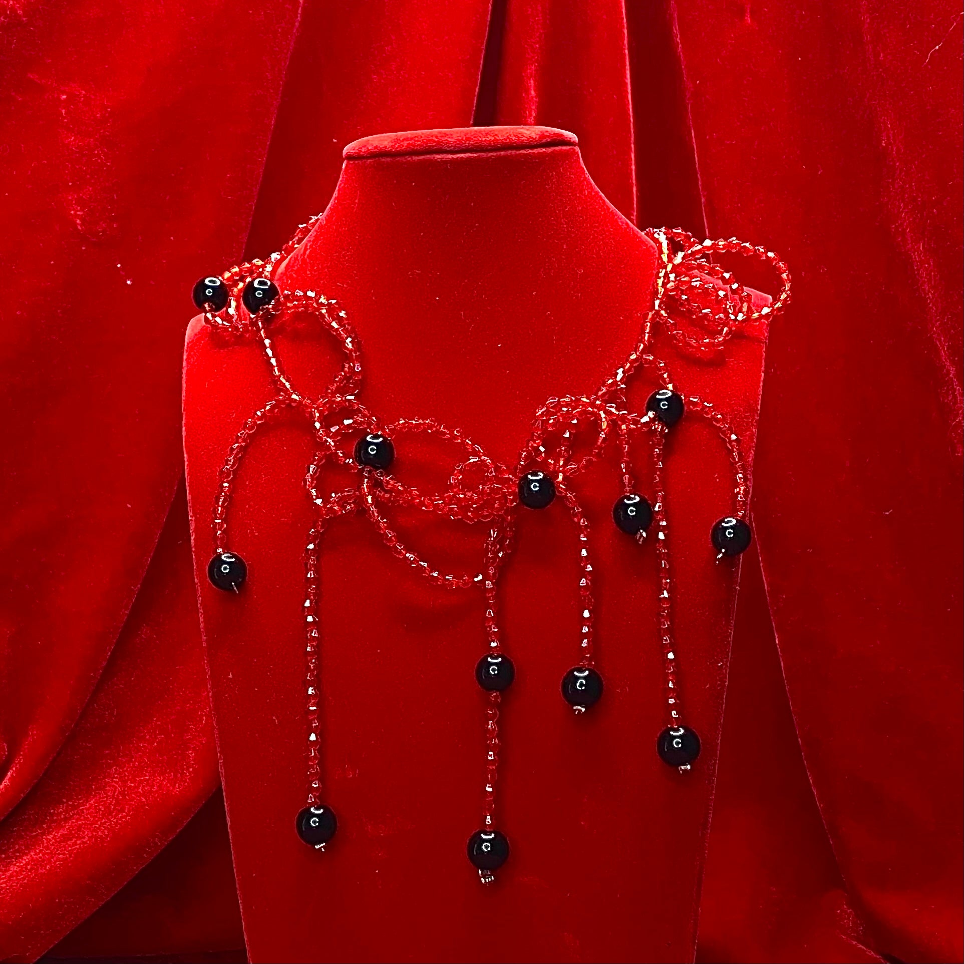 Collar de cuentas rojas enredadas. Con más de 10 hrs de trabajo usando terminaciones de acero inoxidable te presentamos el modelo Monster Bloody.
