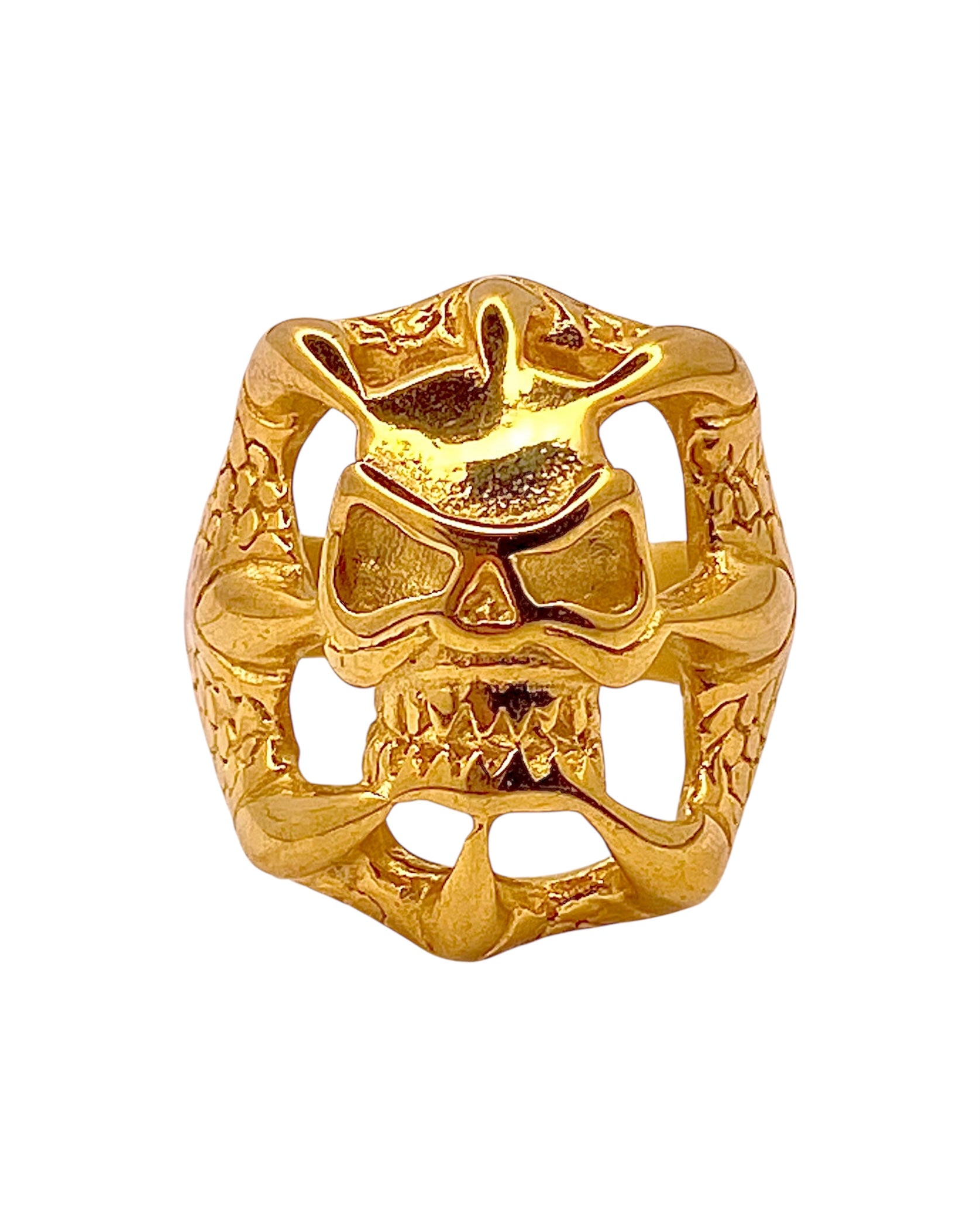 Anillo Skull punch es un modelo hecho de acero inoxidable con detalles muy específicos. Este modelo está disponible en talla única con un diámetro de 2,1 cm y una circunferencia de 67 cm.